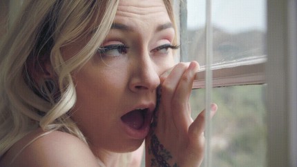 Audrey Madison naughty wife greets friend at door in lingerie gif